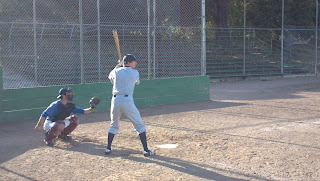 * A surprise in the appearance of Carlos, who saw Lattig at the Dodgers home opener, and asked if we were still playing. He played his usual nonchalant game, not volunteering to play defense unless absolutely necessary, and taking a ball off the chin.
